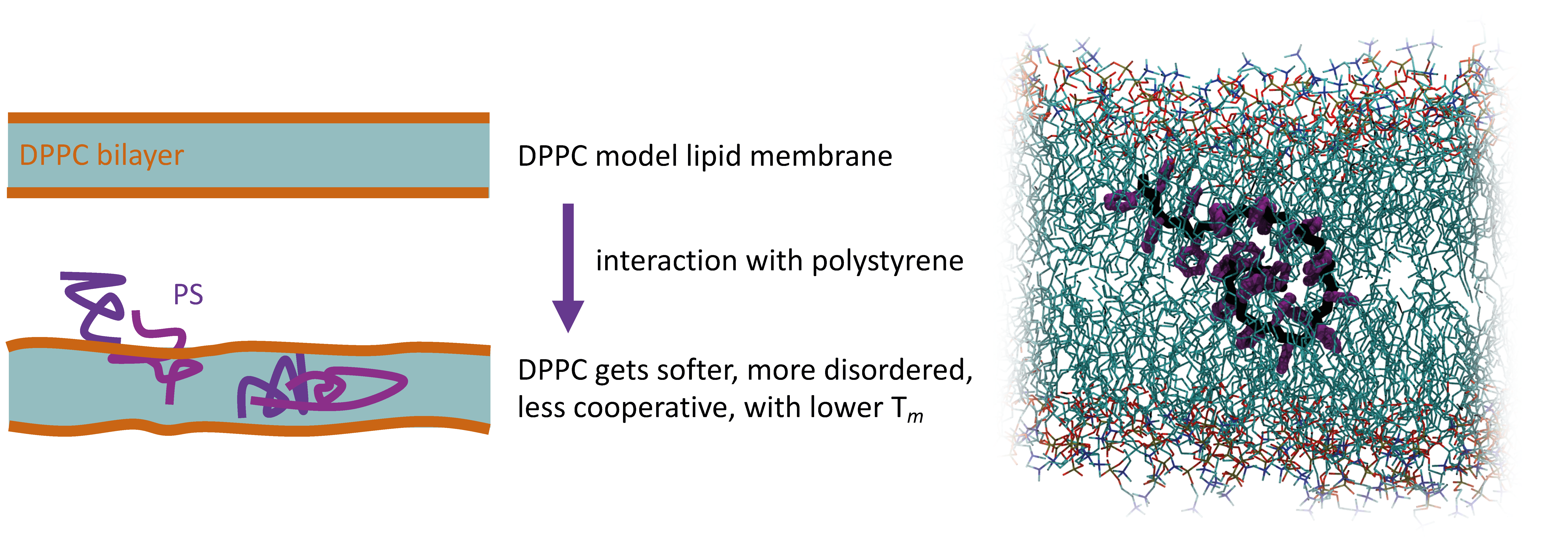 ORIGINAL ARTICLE: Polystyrene perturbs the structure, dynamics, and mechanical properties of DPPC membranes: An experimental and computational study. Bochicchio D., Cantu L., Cadario M. V., Palchetti L., Natali F., Monticelli L., Rossi G., & Del Favero E., Journal of Colloid and Interface Science, 2022. LINK.