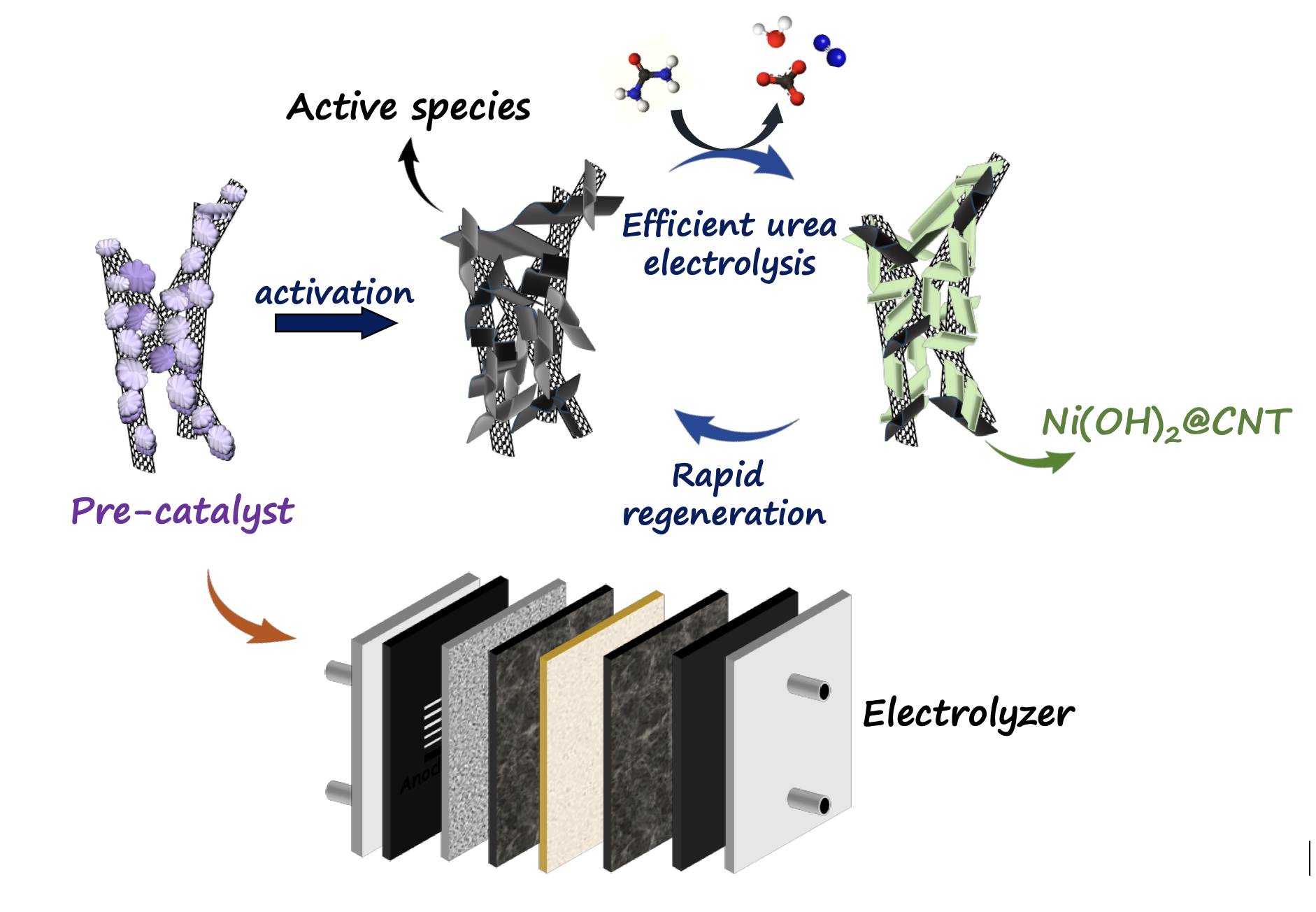 |Urea electrolysis is an emerging energy conversion technology that uses the oxidation of urea, commonly found in wastewater—as a low-energy pathway for hydrogen generation. Because urea breaks down at a much lower voltage than water, this process can significantly reduce the energy required for hydrogen production while simultaneously treating urea-rich waste streams.