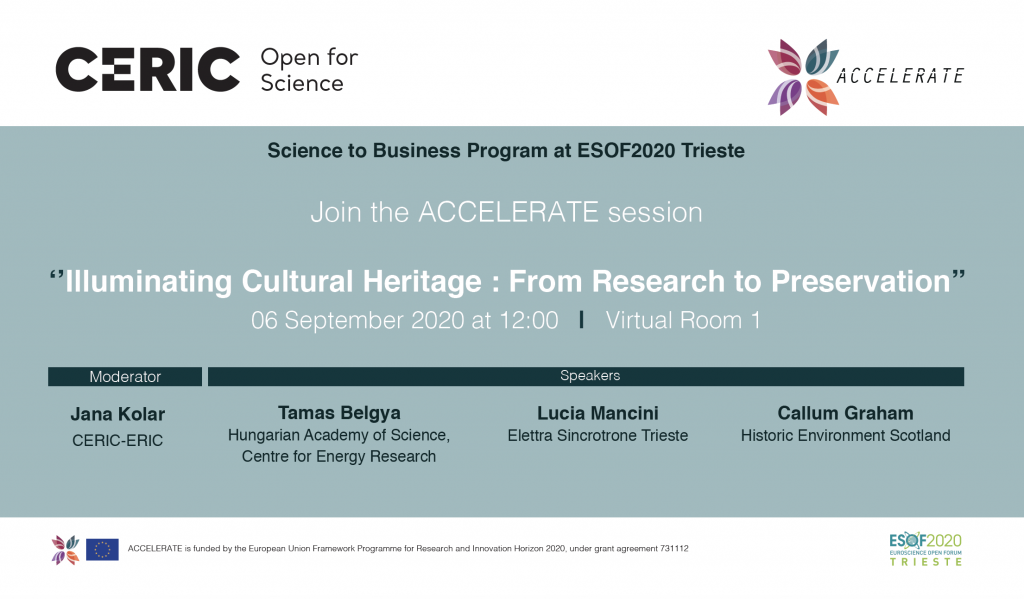 In the frame of the Horizon2020 project ACCELERATE, an ESOF2020 session focused on Cultural Heritage will be held online on 06 September 2020 at 12:00 pm.